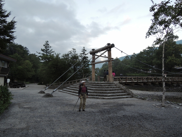 7:20 新村橋の横を通過。涸沢へ続くパノラマコースは、この橋を渡って行く。