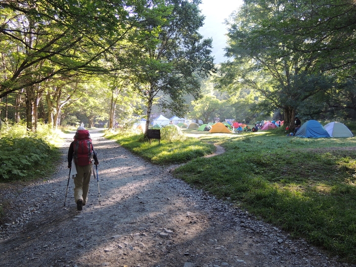 徳沢キャンプ場は、テントが沢山張られて大盛況。