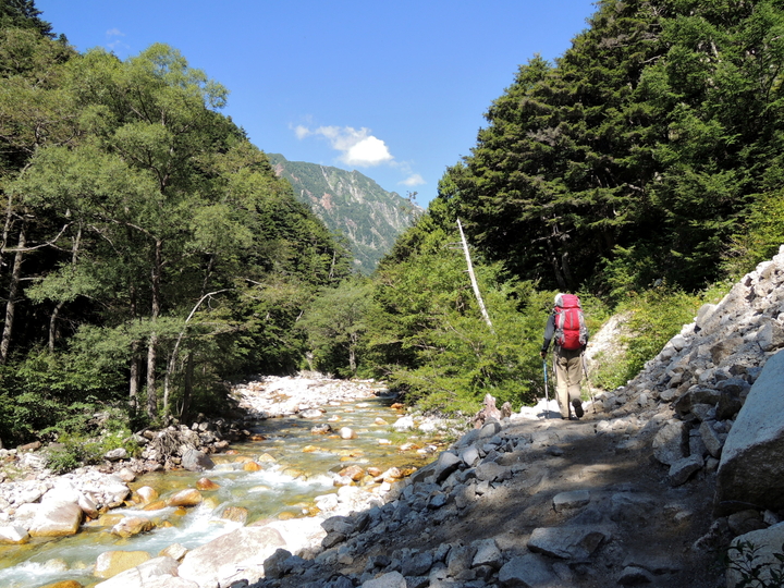 槍沢の清流を眺めながら歩くのは気持ちよかった。