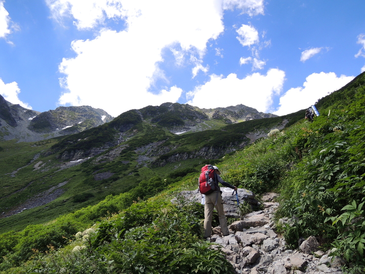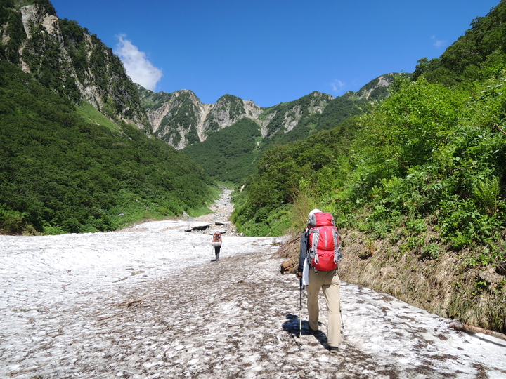 ルート上の雪渓はしっかりしていたので、踏み抜きの心配はなさそうだった。