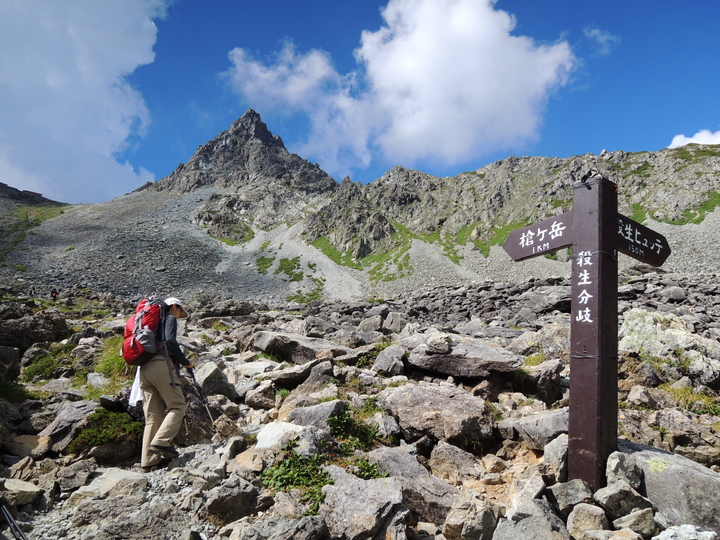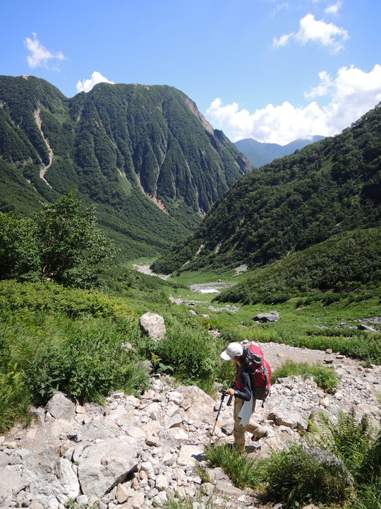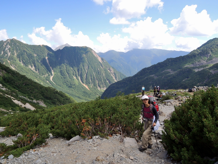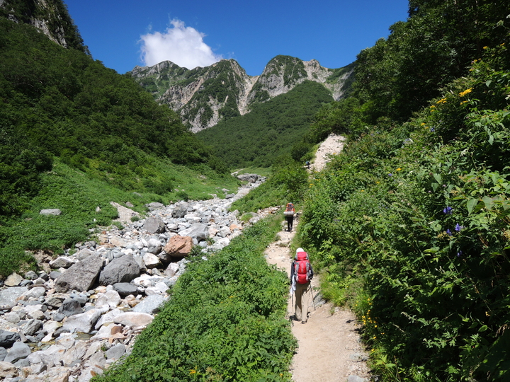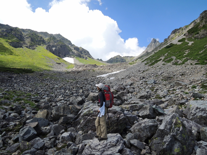 周囲の景観を楽しみながらU字谷を進む。槍沢ロッヂで一緒になったバラけて進む外人一行と、殺生ヒュッテあたりまで抜きつ抜かれつした。
