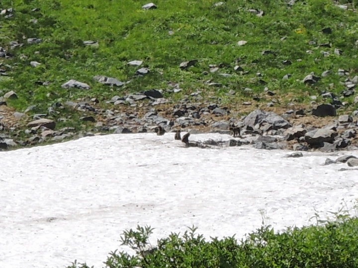 天狗原方面の雪渓に、猿の群れがいた。