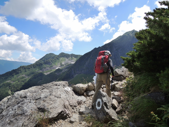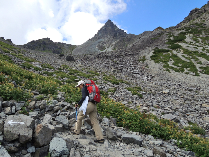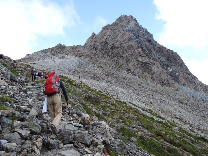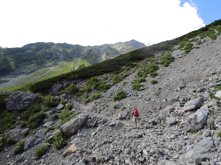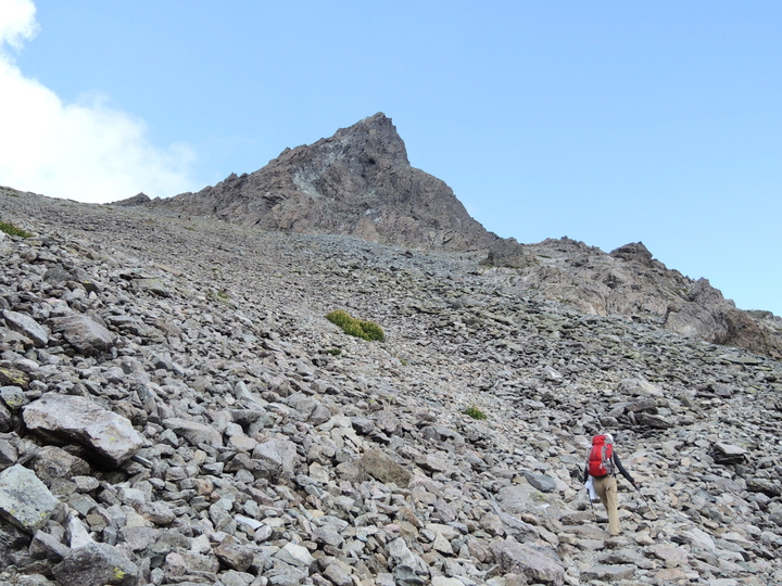 岩屑のガレた道をジグザグに上って行く。