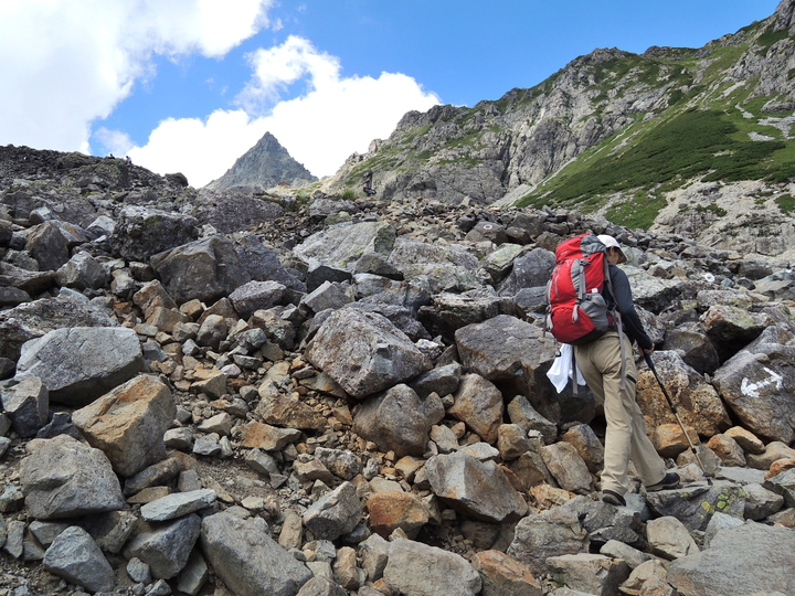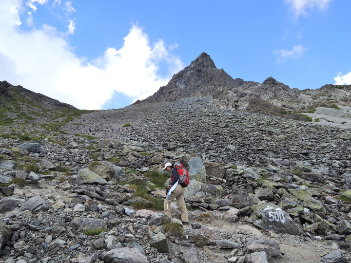 岩ガレをひたすら上るが、槍は全然近づかない。
