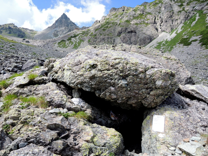 12:55 坊主岩に到着。1828年に槍ヶ岳を開山した播隆上人が、ここでビバーグしたと言われている。