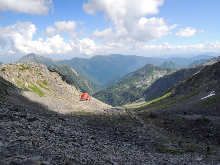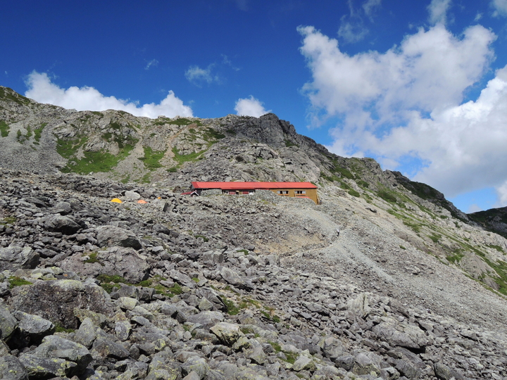 山荘の南側にあるテント場をのぞいてみた。ここまでテントを担いでくるのは大変だが、忘れられない体験になるだろう。
