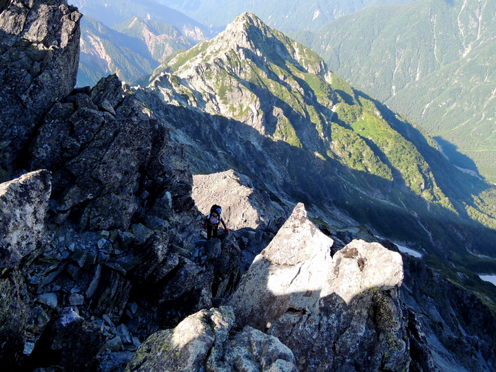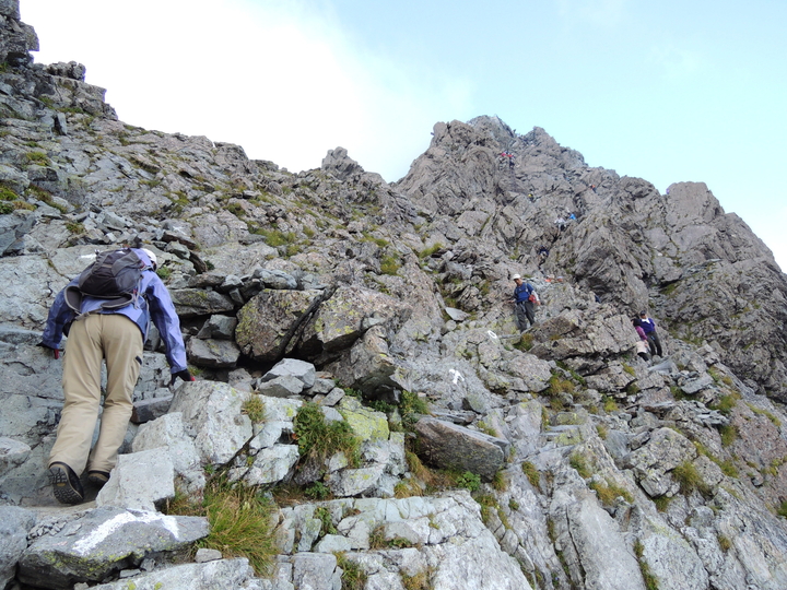 鉄梯子のある一般ルートではなく、北鎌尾根の独標側から登ってくる登山者が数名いた。