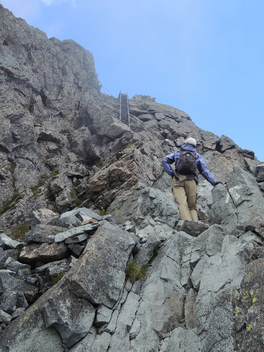 山頂直下には上り専用の鉄梯子が2本連続する。まずはひとつ目。