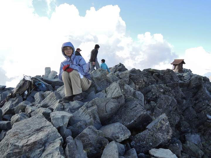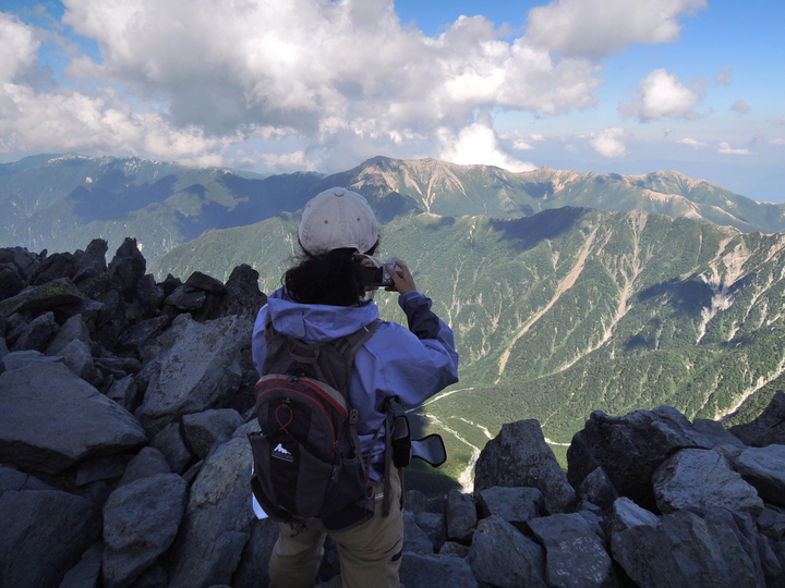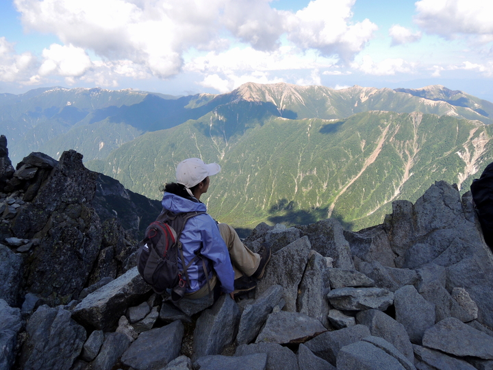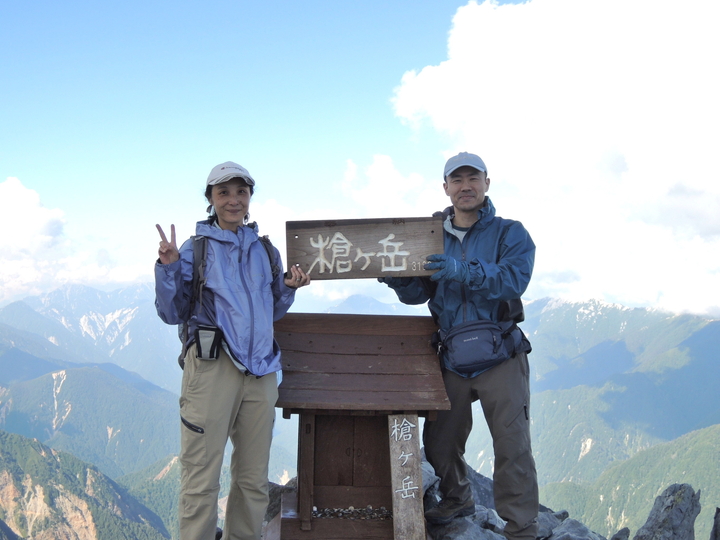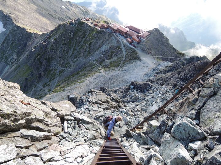 平坦な道が横尾山荘まで延々と続いたが、これがボディーブローのように疲労を蓄積させていると、後半の上りになって気づかされた。槍沢ロッヂを過ぎてからの上りの長さについては十分覚悟をしていたものの、本当に長くて疲労困憊した。特に、槍ヶ岳が見えてからの長さは聞きしに勝るもので、なかなか近づかないので精神的にも疲弊した。ガスが出ていたら翌朝登るつもりでいたが、くっきり晴れていたのでその日のうちに槍ヶ岳山頂へ。山頂直下の長い梯子を上り終え、天を衝く槍の穂先に出た瞬間の喜びは、まさに感無量と呼べるものだった。雲の張り出した西側以外は素晴らしい展望が広がっており、満ち足りた充実感の中で至福の時間を過ごした。山頂は狭かったが、上ってくるハイカーは少なかったので、長時間の滞在を楽しむことができた。下山後、槍ヶ岳山荘の簡易個室に宿をとった。布団が少々湿っていたが、疲れていたのでぐっすり寝られた。