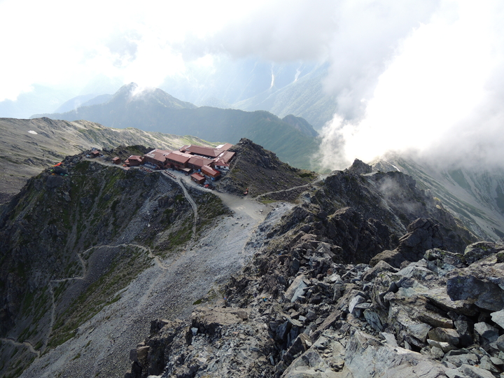 眼下には槍ヶ岳山荘。山荘というより、もはやホテル並みの規模であることが分かる。