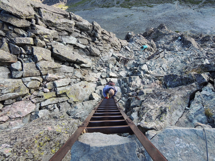 梯子と鎖が連続するが、慎重に上れば危険はない。嫁もすいすい上って行く。