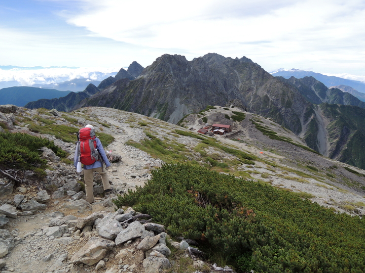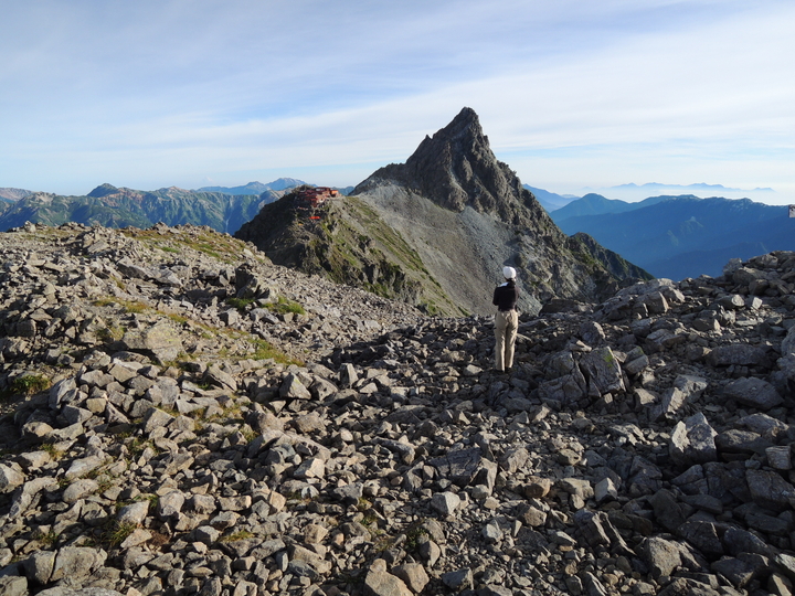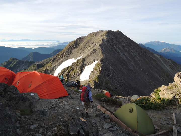 大キレットは危険を感じるよりも、体力的にキツかった。長谷川ピークを過ぎてからの区間は緊張を強いられたが、あとは比較的すんなり越えることができた。それよりも、A沢のコルを過ぎてからの上りがこたえた。北穂高小屋直下の急登は、蓄積された疲れもあって足が進まず、何度も立ち止まりながら何とか上り切った。時間的に穂高岳山荘まで足を延ばすか迷うところであったが、無理はせずこの日は北穂高小屋に宿泊。時間に余裕があったので、入念にストレッチを繰り返し、あとはのんびり過ごした。予想以上に混んでいて驚いたが、結局1人1枚の布団で寝ることができた。