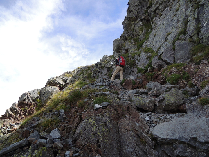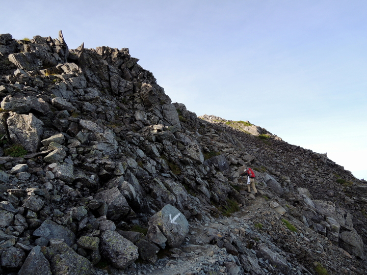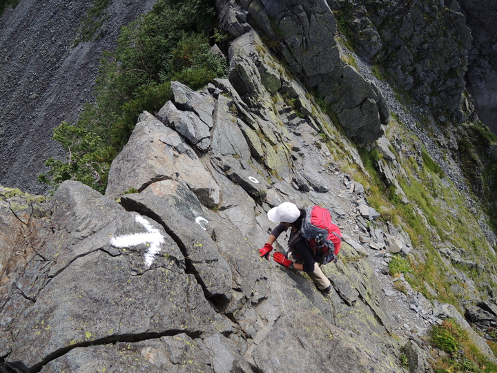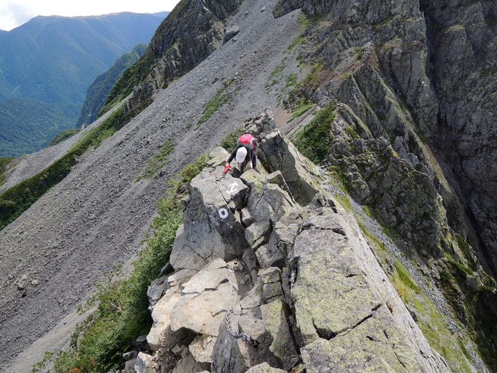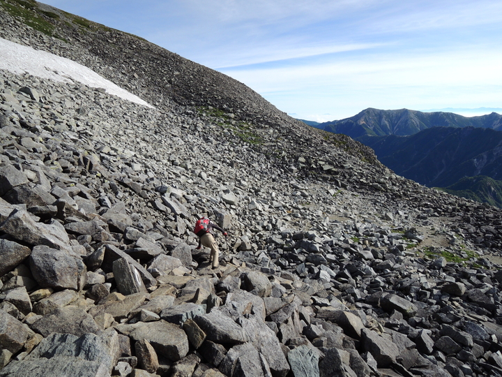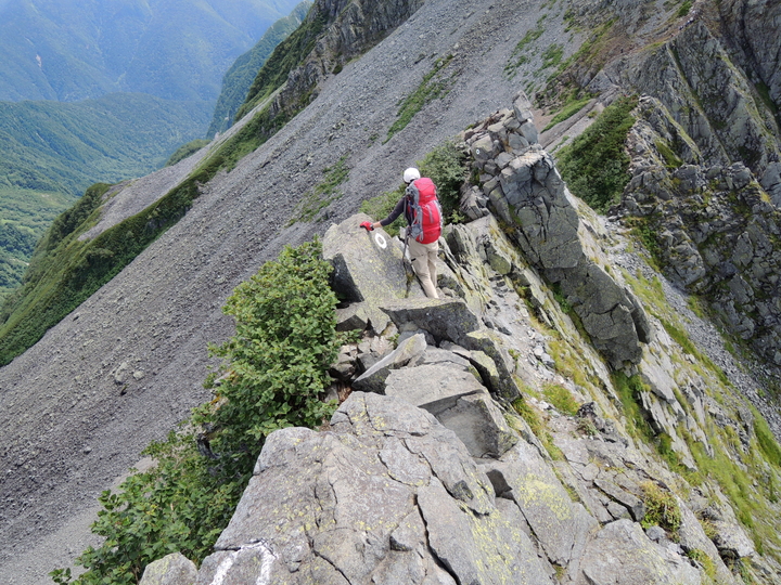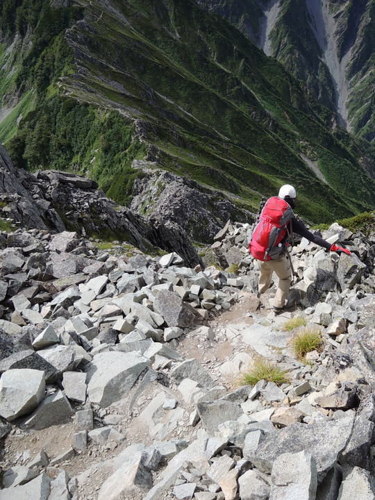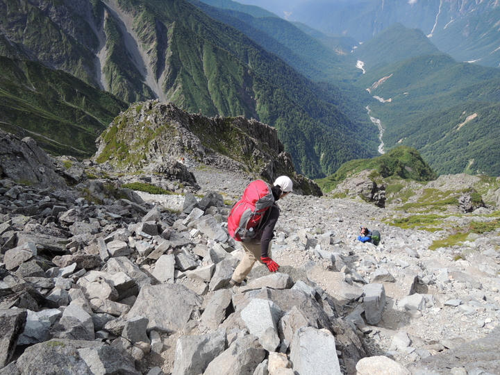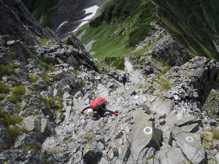 初っ端から崩落気味の嫌なガレ場の急下降が続いた。