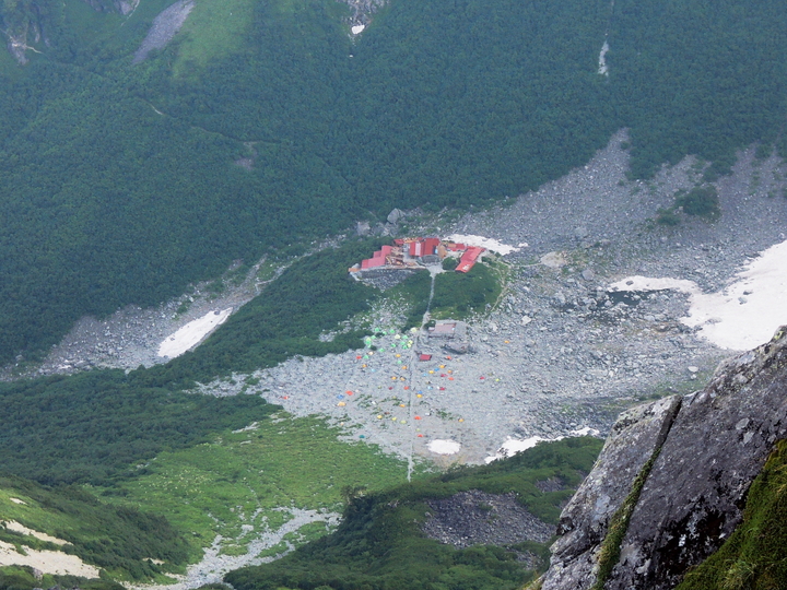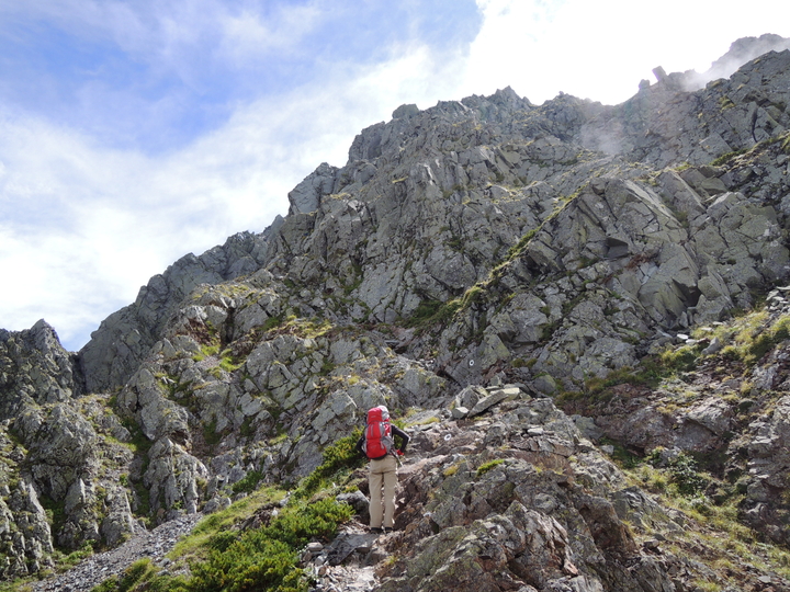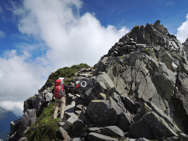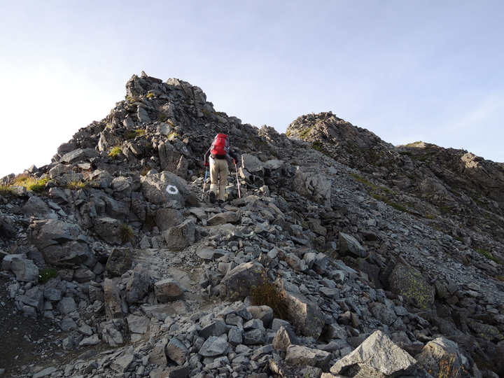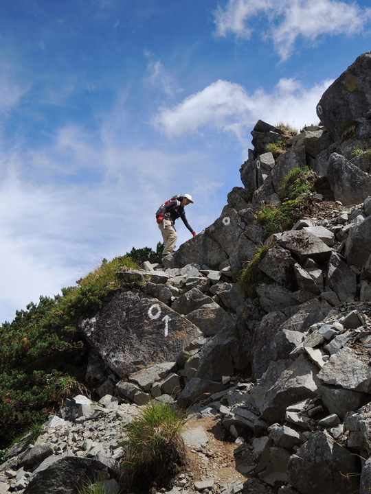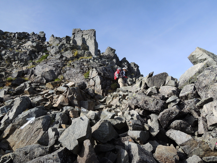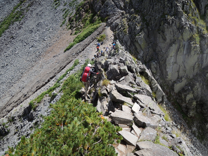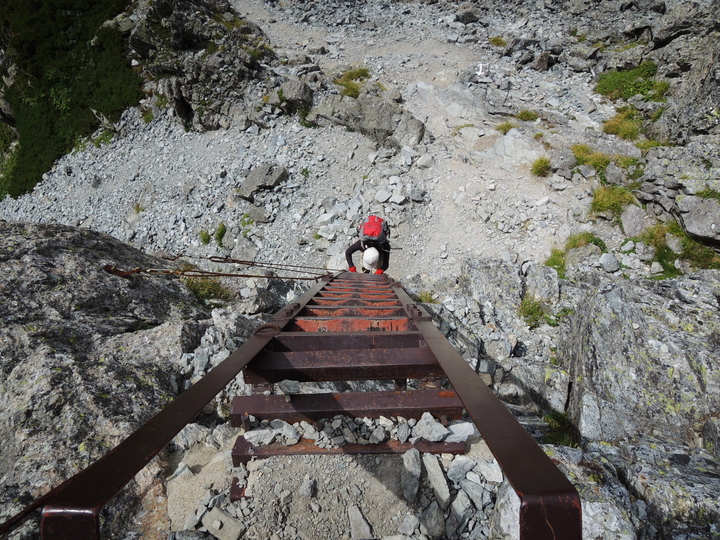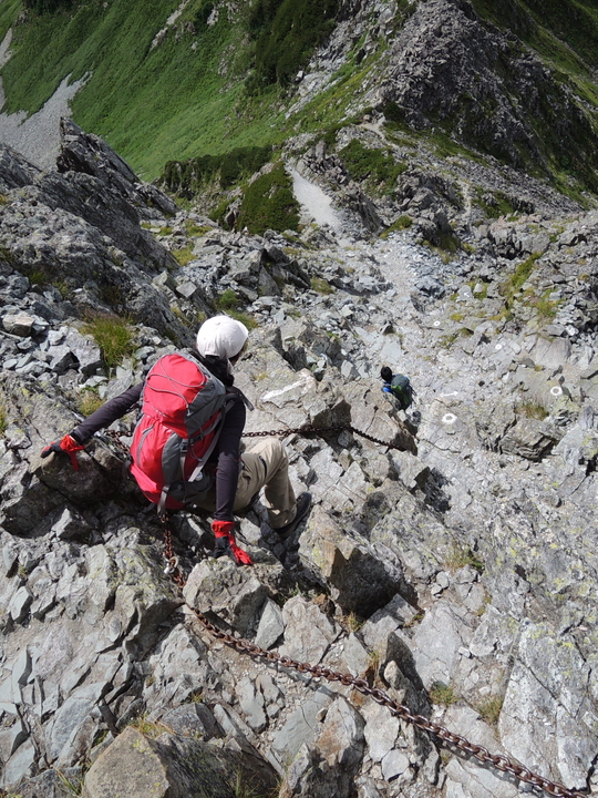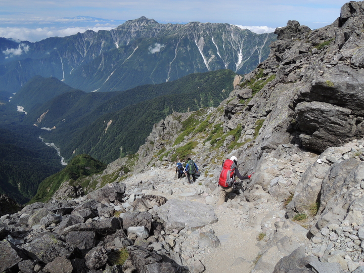初っ端から崩落気味の嫌なガレ場の急下降が続いた。