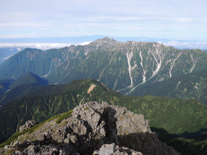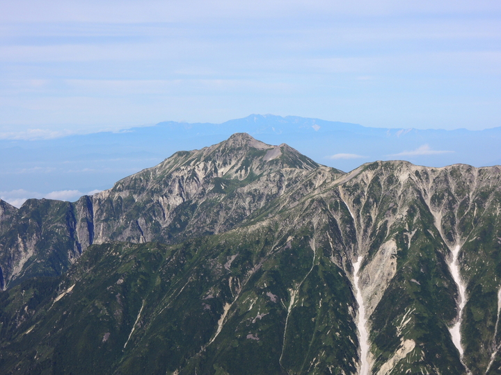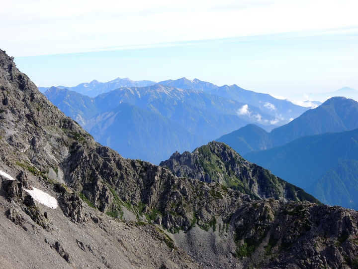 南岳から眺めた笠ヶ岳と抜戸岳。左奥は白山。