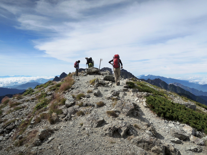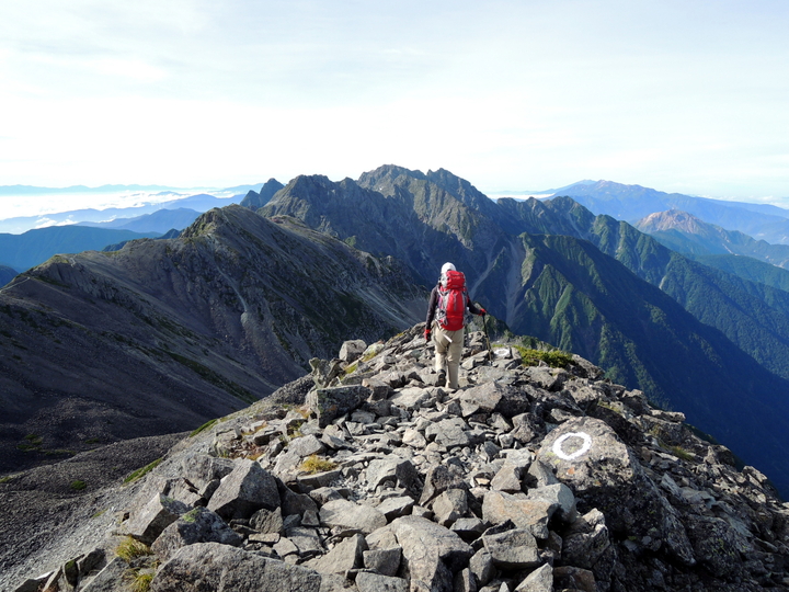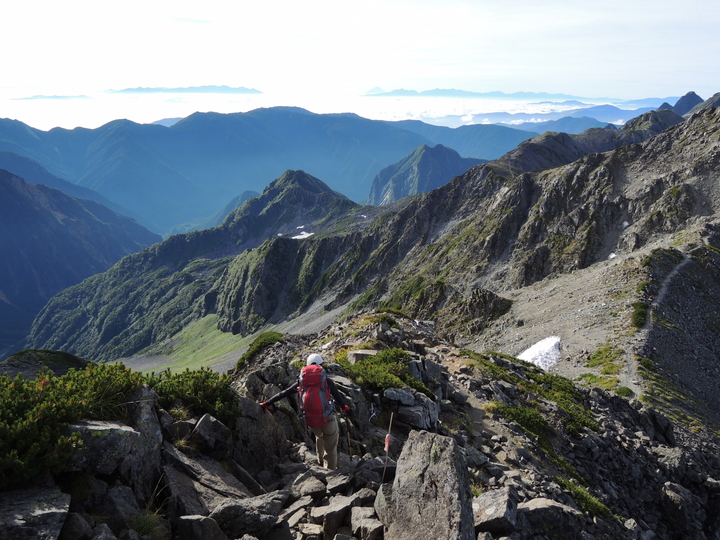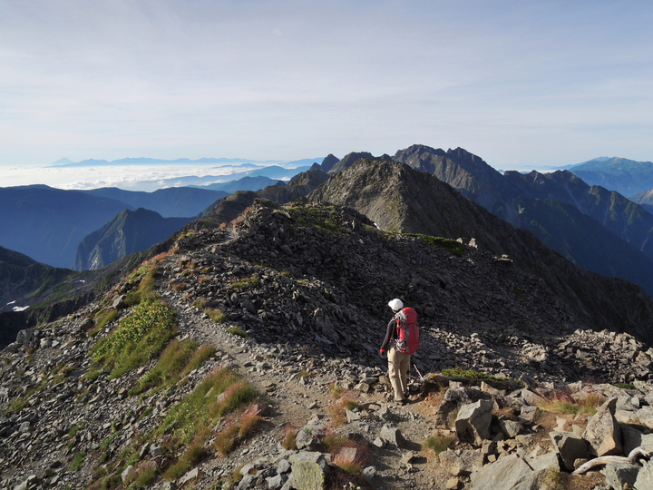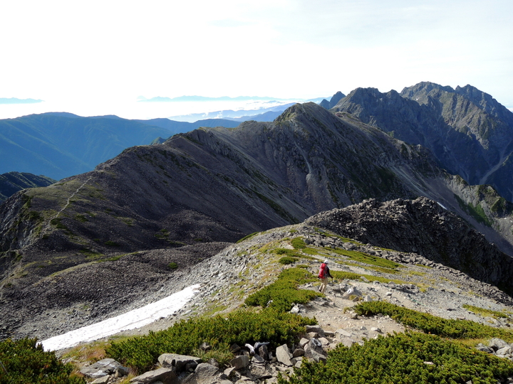 まさに北アルプスと感じるような雄大な稜線歩きが続く。