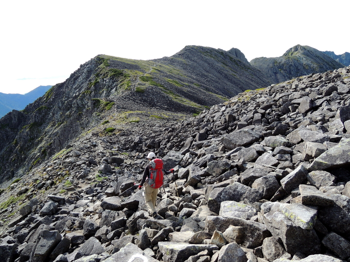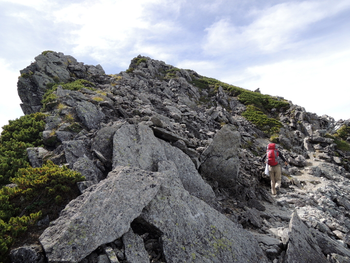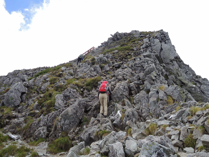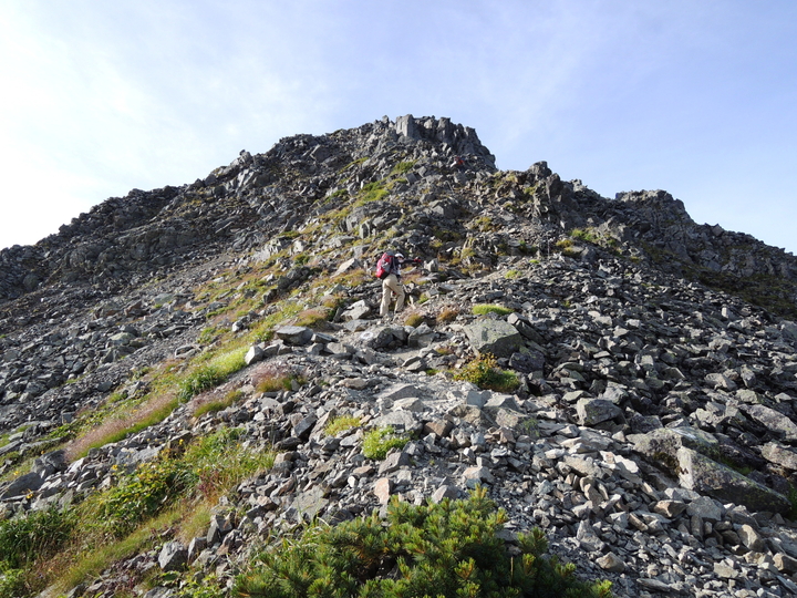 大喰岳の山頂まで、岩ガレを90mほど上る。