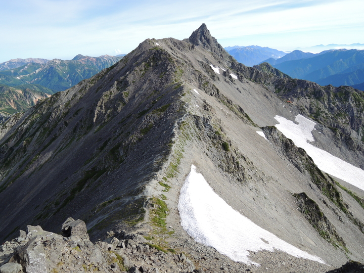 ほれぼれするような山容の美しさ。槍沢のU字谷から眺めた槍ヶ岳の美しさには別格の山という印象を受けたが、大喰岳から眺める槍ヶ岳からますますその印象を深くした。まさに比類なき山と言える。