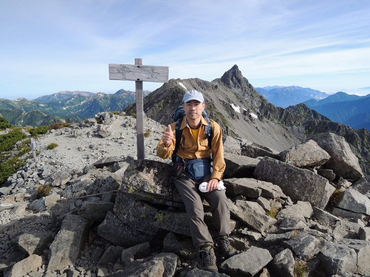 大喰岳の山頂から眺める槍ケ岳は素晴らしいの一言。絶好の撮影ポイントと言える。