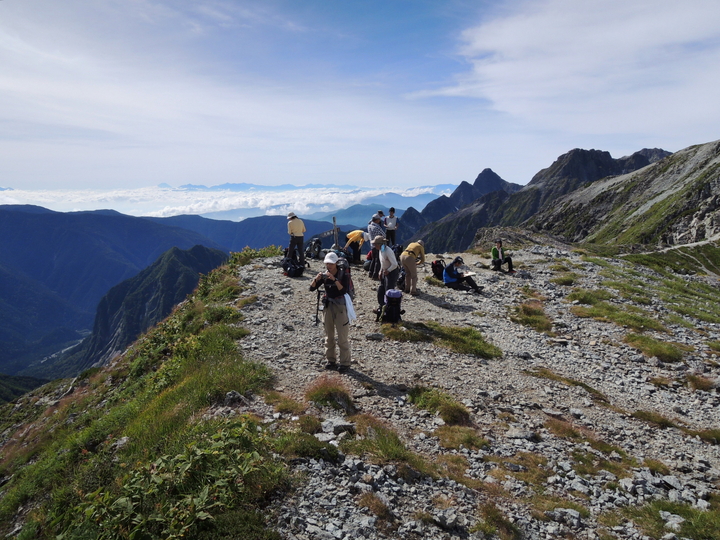 休みがてらキレットを振り返ると、長谷川ピークに向かう団体が見えた。