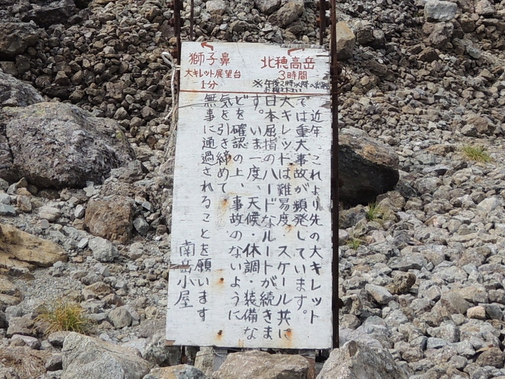 小屋の近くに注意を促す看板が。しっかり読んでおいた。
