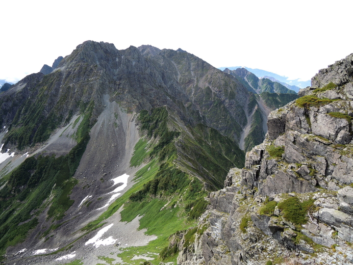 振り返って獅子鼻岩から続く大キレットの前半部分を眺める。