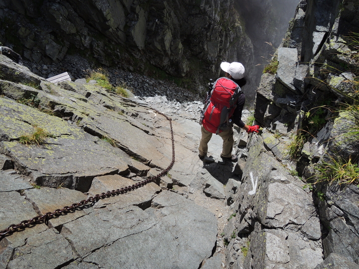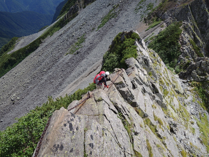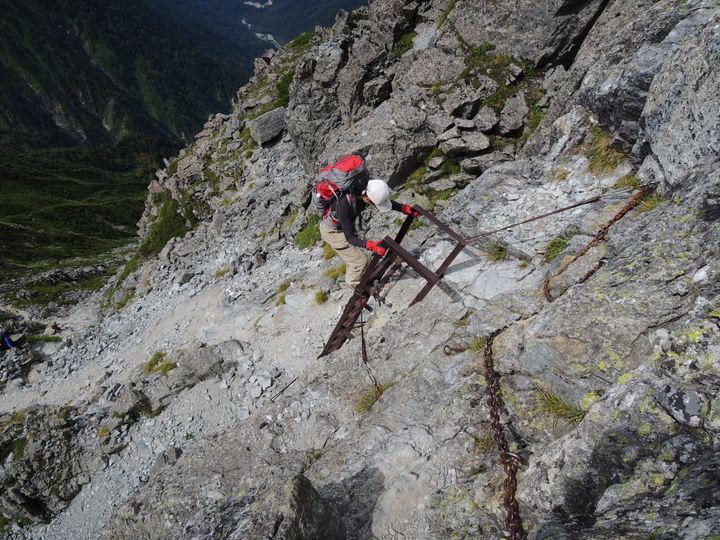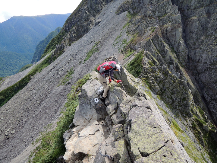 深い谷を覗くとゾクゾクする。高所恐怖症の方にはかなりハードルが高いルートなのは間違いない。