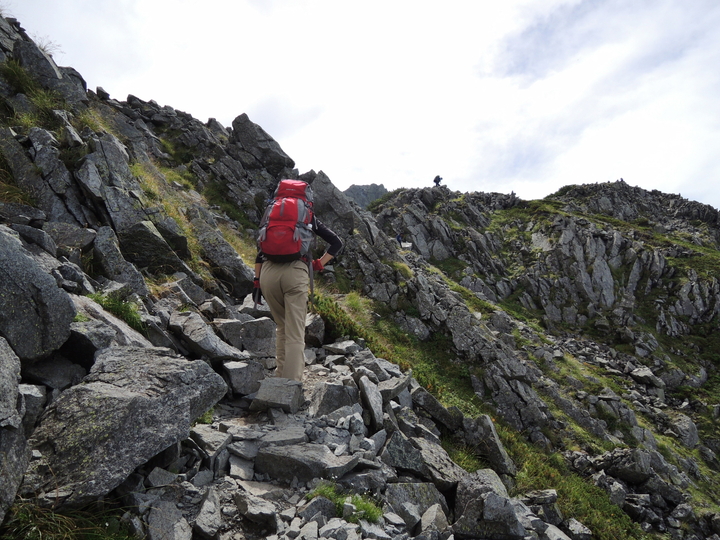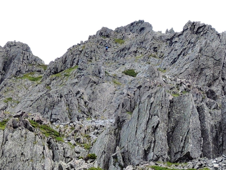 A沢のコルを出発。振り返ったキレットに人の姿があった。