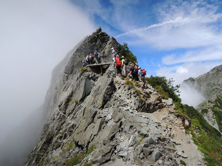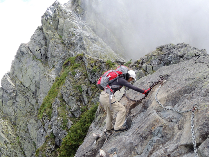 飛騨泣きはクサリと足場が付けられていて難易度は高くないが、足の下はスパッと何もなかった。