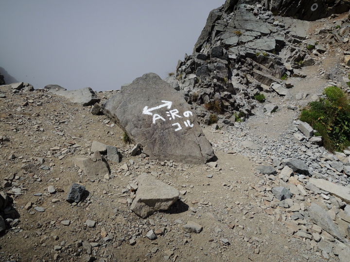 稜線を進むと、南岳と天狗原稜線分岐が見えてきた。