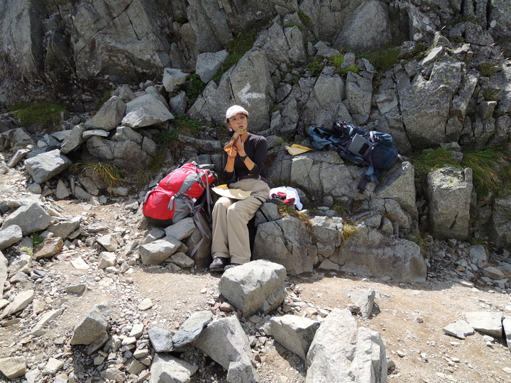すぐにも大キレットへ向かいたかったが、嫁が休みたいと言うので小休憩することに。