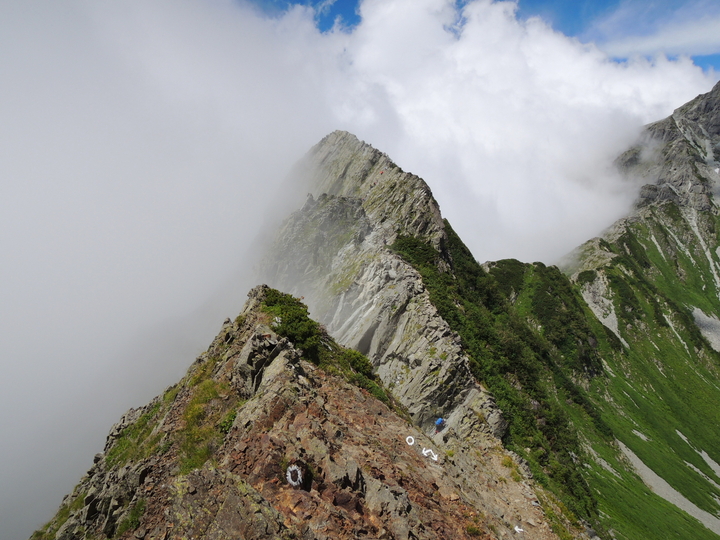 長谷川ピークのナイフリッジに人が立っているのが見えた。それにしても凄い稜線です。