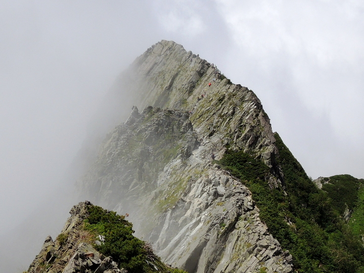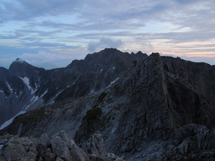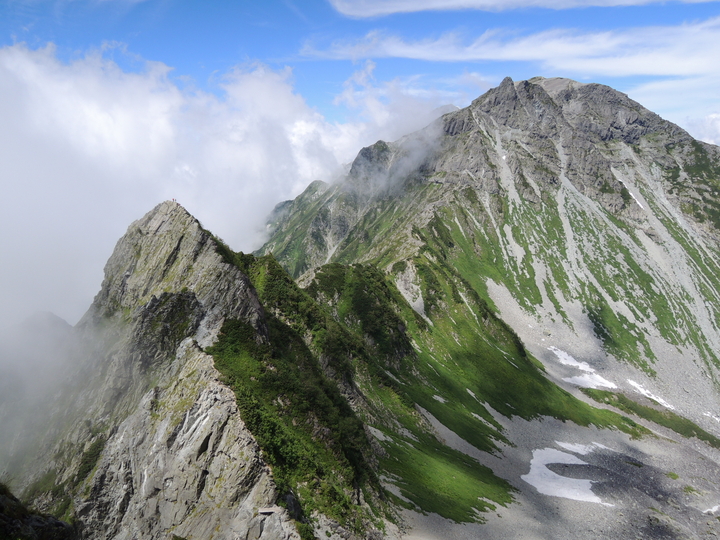 ガスが切れて、南岳から続く大キレットの稜線が一望できた。