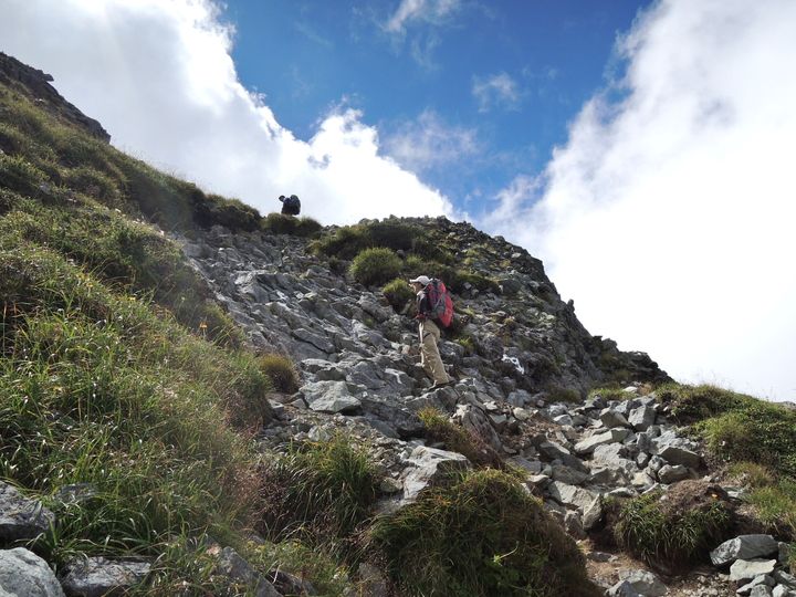すぐ下に先行者がいるので落石に細心の注意を払う。