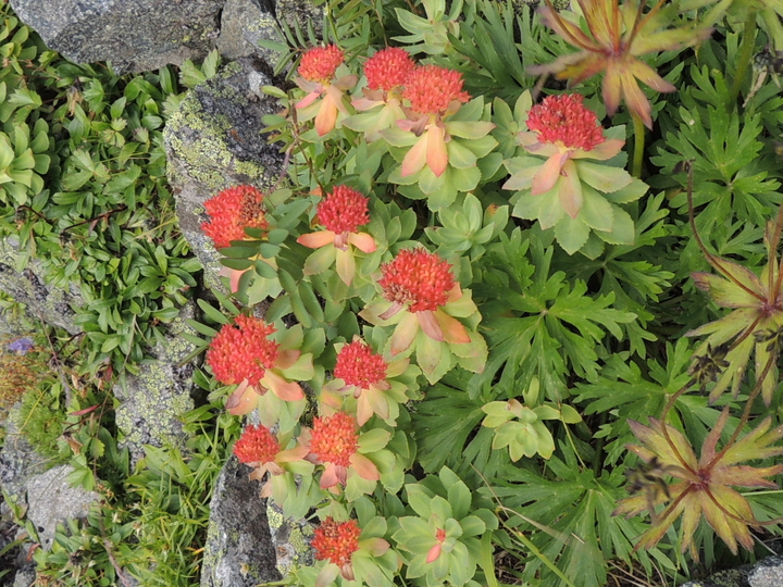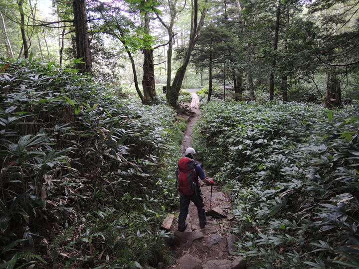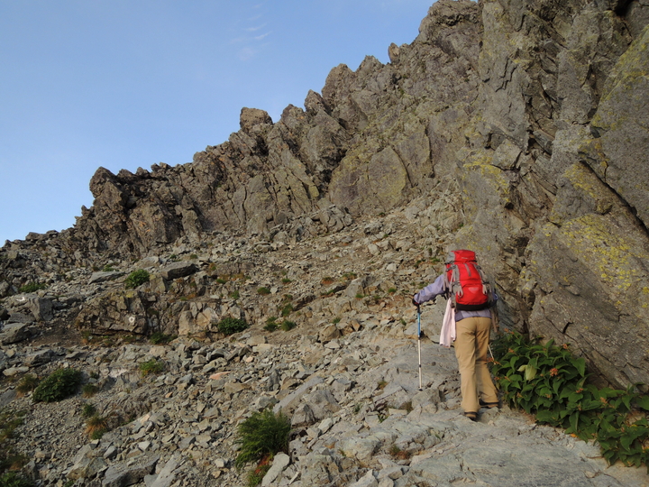 重い荷を背負った若者集団がいたので、付かず離れずついていった。様々な高山植物が山道脇に咲いていた。