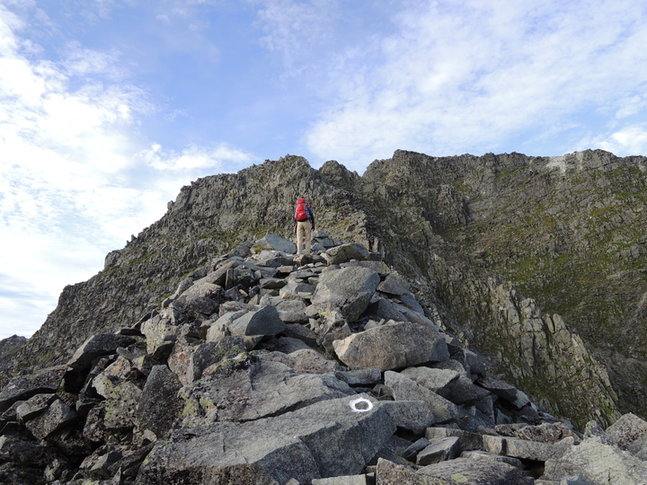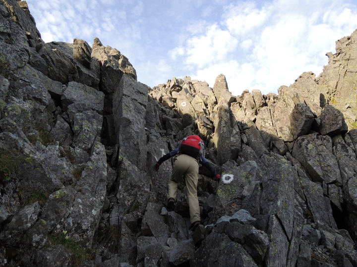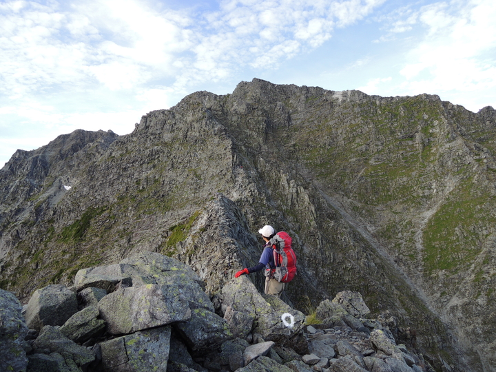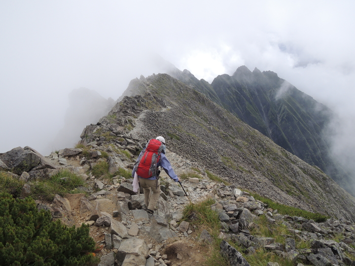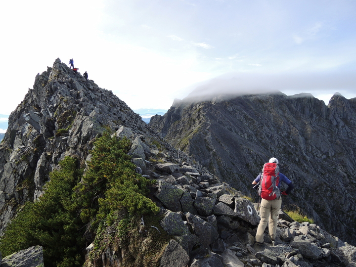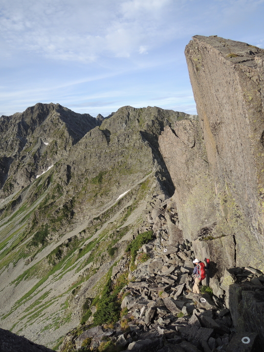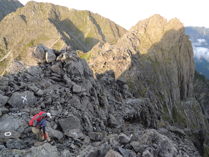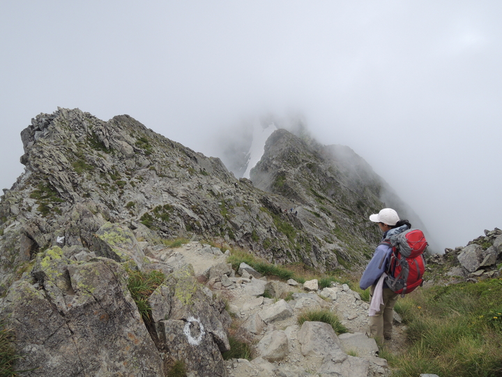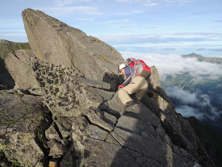 滝谷ドームの手前はやせた岩稜がしばらく続く。