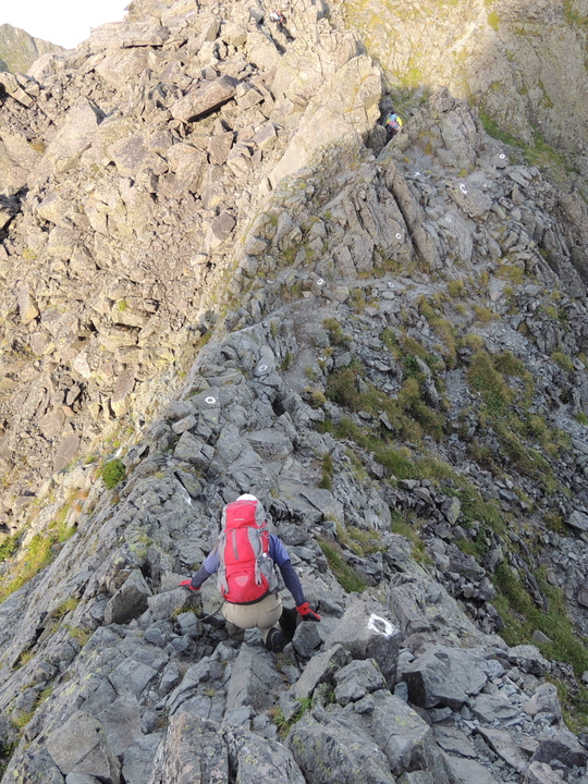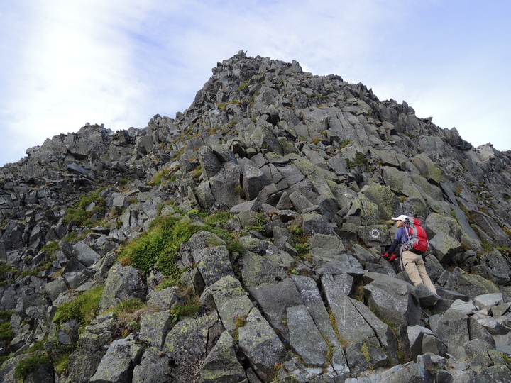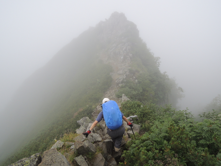 前穂高も岩場の急登が連続していた。空身でもキツかった。