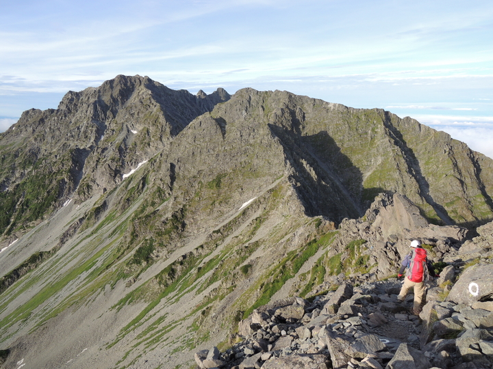 足場はしっかりしていたので、普通に通り抜けられた。再び稜線まで上り返し、涸沢側へ。