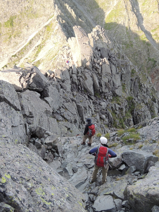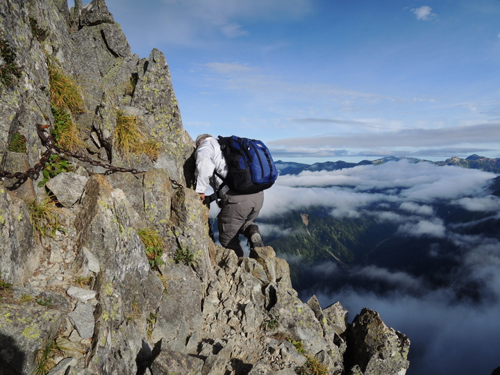 下からよじ登るハイカーの姿が見えた。本当に一般ルートなのかと疑いたくなる光景だった。