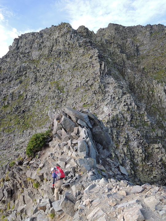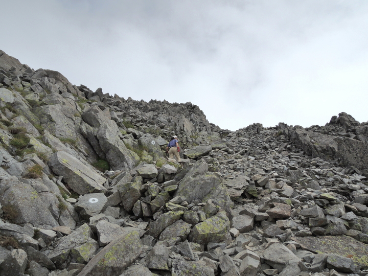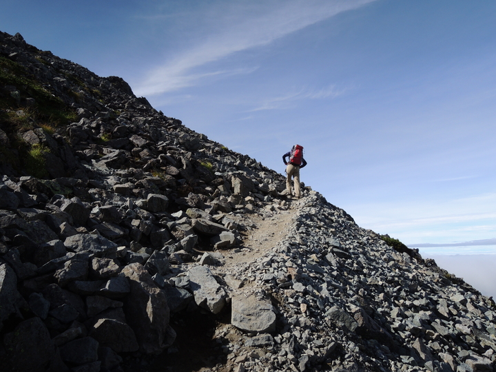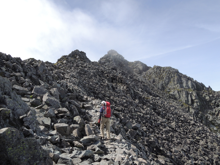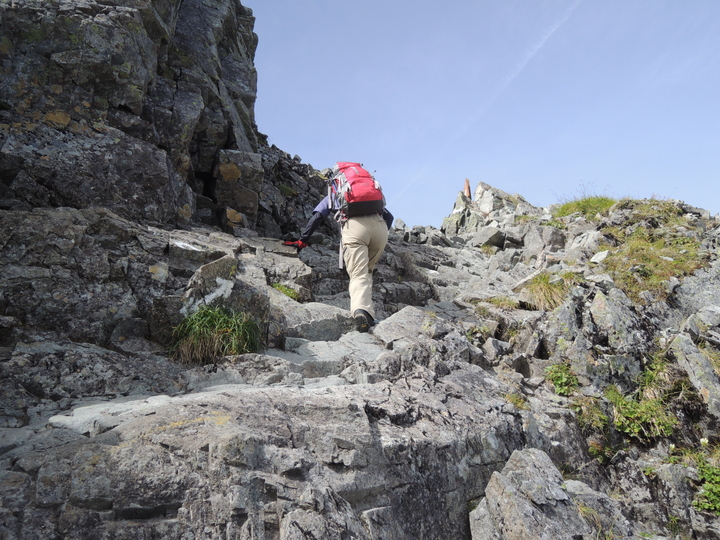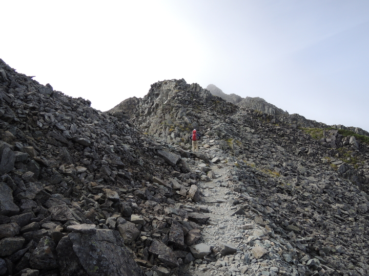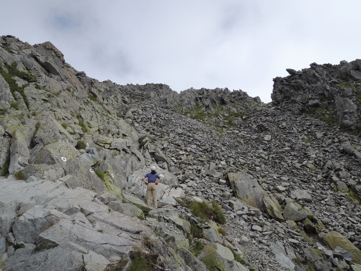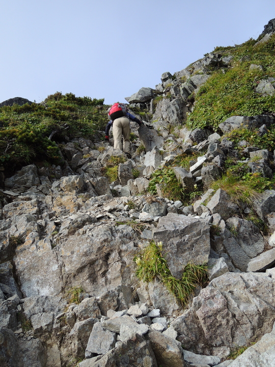 鉄梯子を過ぎたら岩ガレの急登をジグザグに上って行く。