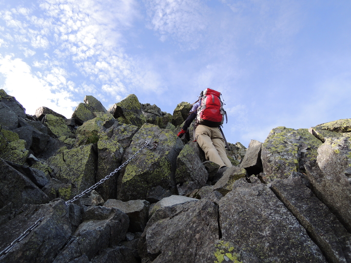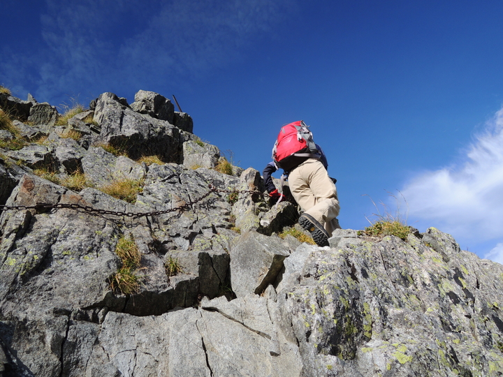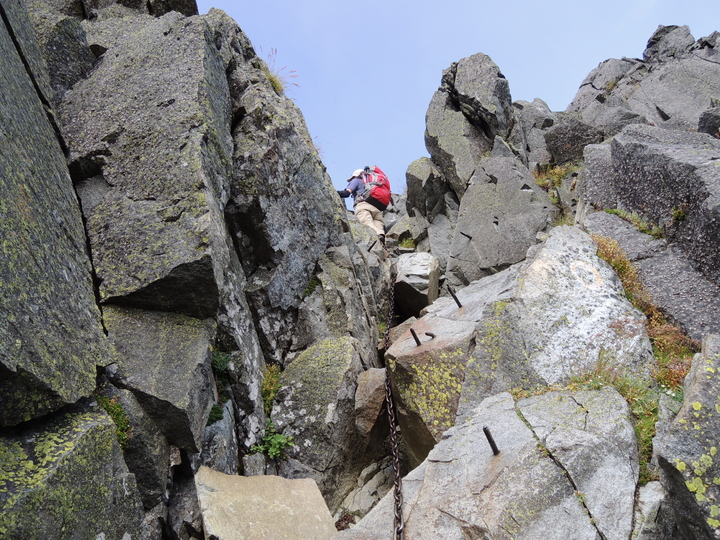 クサリ場の次は鉄梯子、そしてまたクサリ場と、難所が連続していた。