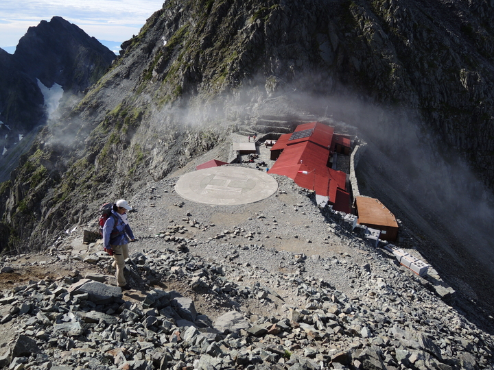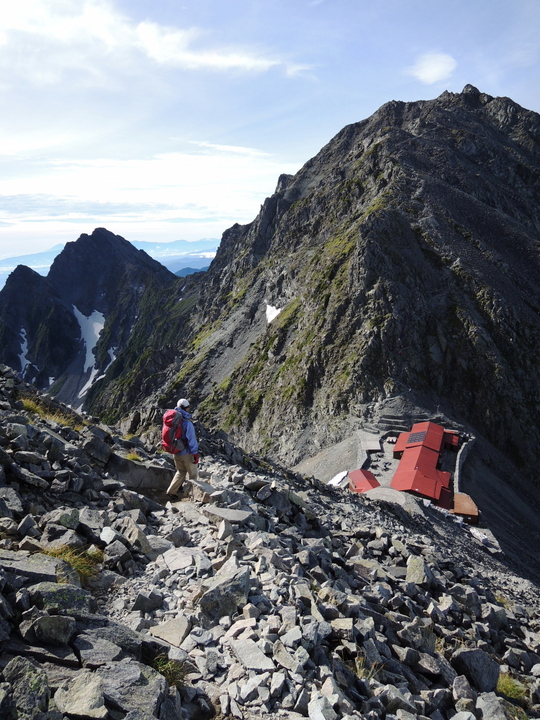 山頂の眺めを楽しんでから白出(しらだし)のコルに建つ穂高岳山荘へ下った。