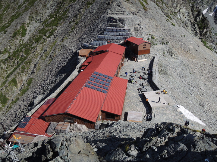 上から見た穂高岳山荘。