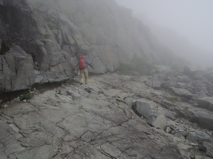 滑りやすそうな一枚岩をトラバースして進む。
