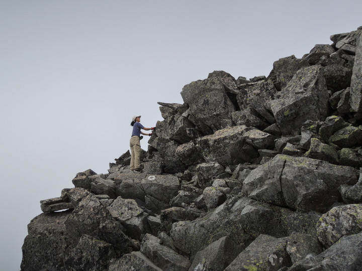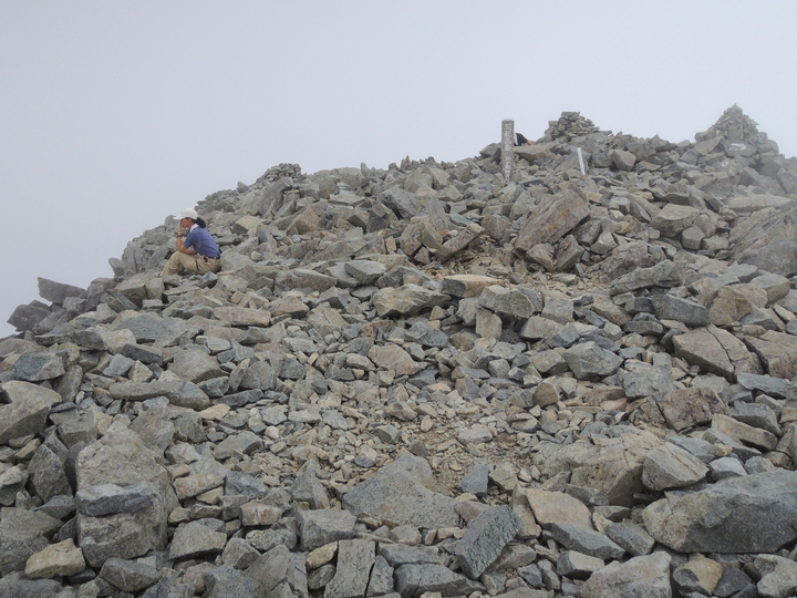 広い山頂は岩屑だらけ。10分ほどボーッとしてから下山を開始した。