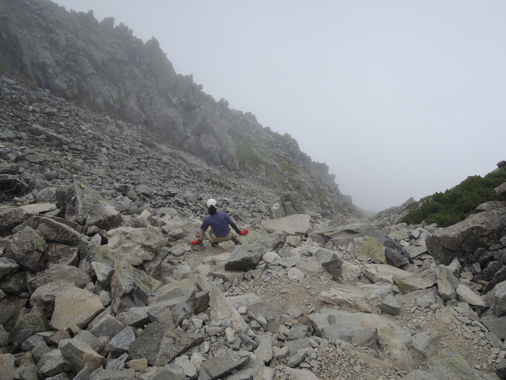 岩場を上り返し、大きな岩ゴロを越えて涸沢側へ。
