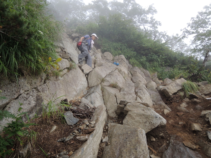 樹林帯に入っても、急な岩場が続く。