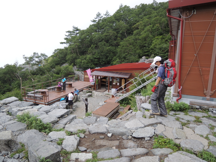 8:20 穂高岳山荘に到着。槍ヶ岳の夕食で隣り合わせたカップルと、ここでも一緒になった。