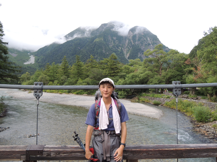 河童橋で記念撮影。疲労困憊していたが、心地よい達成感と感謝の念に満たされた。