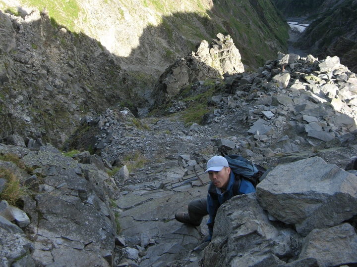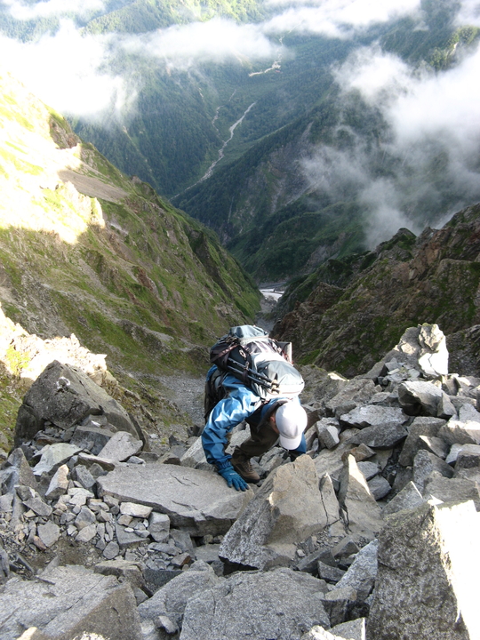 浮石が多いので落石には細心の注意を払った。